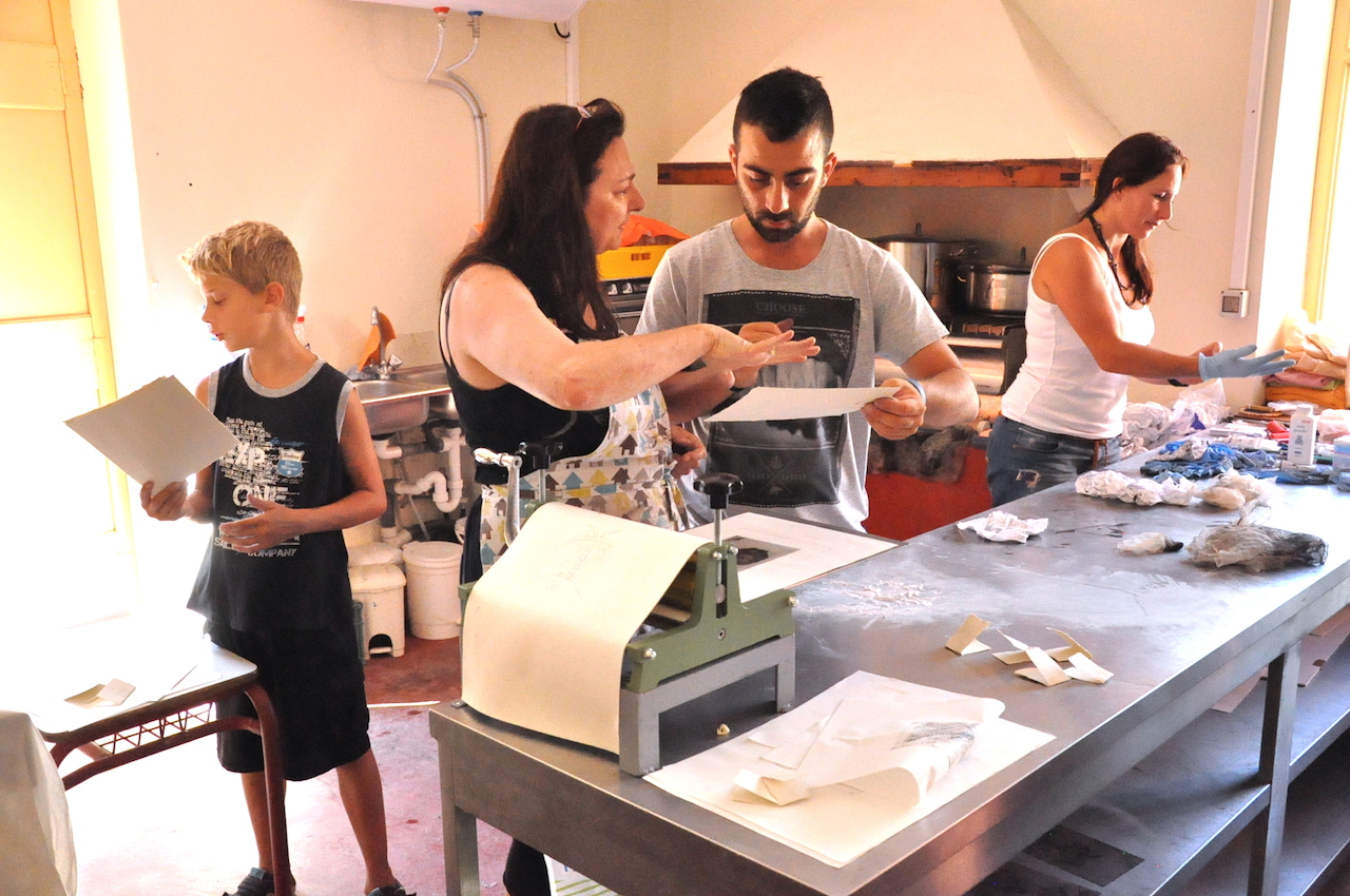 She is conducting a printmaking workshop from 15 to 24 of July at the Loggos schoolhouse, next to the exhibition Printmaking : Techniques & Styles .
